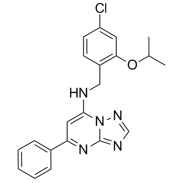 | SMILES | ClC1=CC(OC(C)C)=C(CNC2=CC(C3=CC=CC=C3)=NC4=NC=NN42)C=C1 |