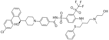 | SMILES | O=C(NS(=O)(C1=CC=C(N[C@H](CCN(CCO)C)CSC2=CC=CC=C2)C(S(=O)(C(F)(F)F)=O)=C1)=O)C3=CC=C(N4CCC([C@H](C5=CC=CC=C5C6=CC=C(Cl)C=C6)O)CC4)C=C3 |