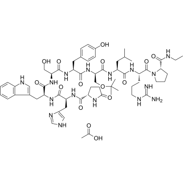 | SMILES | O=C(NCC)[C@H]1N(C([C@H](CCCNC(N)=N)NC([C@H](CC(C)C)NC([C@@H](COC(C)(C)C)NC([C@H](CC2=CC=C(O)C=C2)NC([C@H](CO)NC([C@H](CC3=CNC4=C3C=CC=C4)NC([C@H](CC5=CNC=N5)NC([C@H](CC6)NC6=O)=O)=O)=O)=O)=O)=O)=O)=O)CCC1.CC(O)=O |