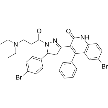 | SMILES | O=C1NC2=C(C(C3=CC=CC=C3)=C1C4=NN(C(C4)C5=CC=C(C=C5)Br)C(CCN(CC)CC)=O)C=C(C=C2)Br |