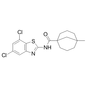 | SMILES | O=C(NC1=NC2=C(C(Cl)=CC(Cl)=C2)S1)C3(C4)CCCC4(C)CCC3 |