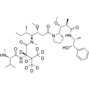 D8-MMAE(D8-单甲基奥里司他)是一种标记了氘的MMAE,是一种强效的有丝分裂抑制剂和微管蛋白抑制剂。