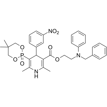 | SMILES | O=C(C1=C(C)NC(C)=C(P2(OCC(C)(C)CO2)=O)C1C3=CC=CC([N+]([O-])=O)=C3)OCCN(CC4=CC=CC=C4)C5=CC=CC=C5 |