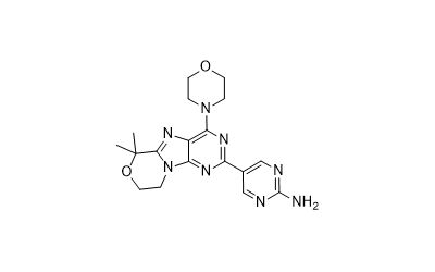 | SMILES | NC1=NC=C(C2=NC(N3CCOCC3)=C4N=C(C(C)(C)OCC5)N5C4=N2)C=N1 |