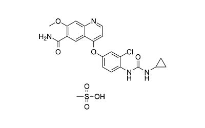 | SMILES | O=C(C1=C(OC)C=C2N=CC=C(OC3=CC=C(NC(NC4CC4)=O)C(Cl)=C3)C2=C1)N.OS(=O)(C)=O |