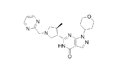 | SMILES | C[C@@H]1CN(C[C@H]1C2=NC(=O)C3=CNN(C3=N2)C4CCOCC4)CC5=NC=CC=N5 |
