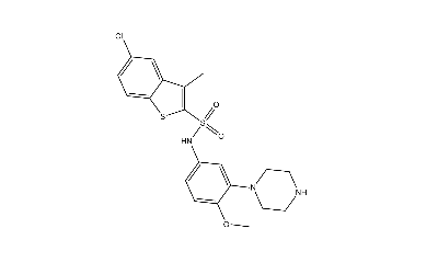 | SMILES | CC1=C(SC2=C1C=C(C=C2)Cl)S(=O)(=O)NC3=CC(=C(C=C3)OC)N4CCNCC4 |